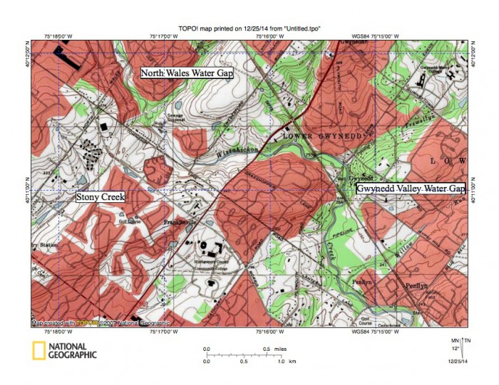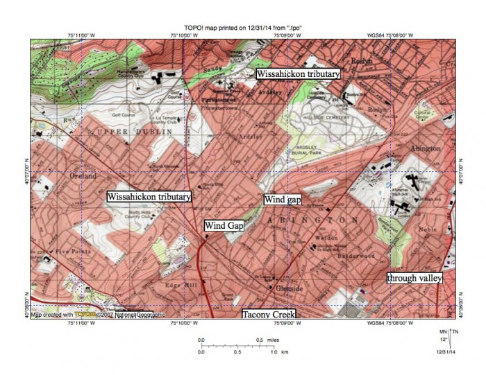 Wissahickon Creek water gap near North Wales: evidence