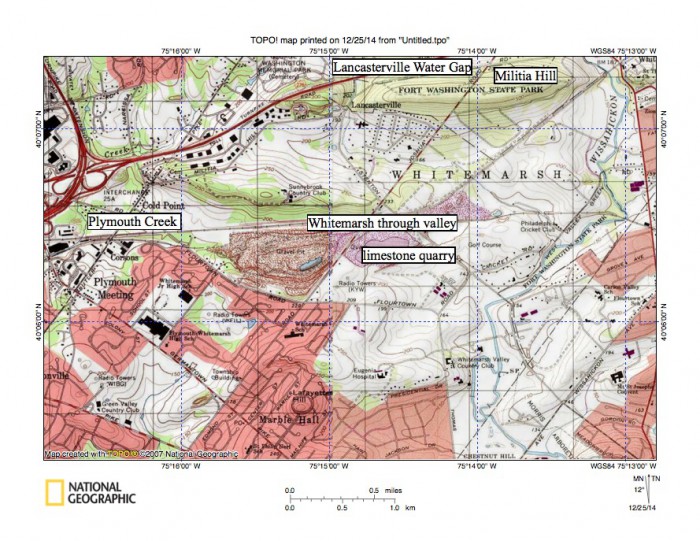 Wissahickon Creek water gap at Ambler: evidence